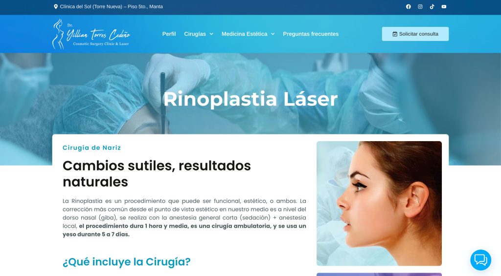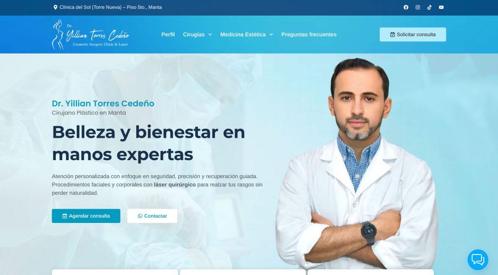 El doctor Yillian Torres Cedeño, es un prestigioso cirujano plástico en Manta, Manabí, con formación integral en Argentina y práctica hospitalaria y privada en Manta, Manabí. Su enfoque combina técnica quirúrgica, seguridad y acompañamiento cercano antes y después del procedimiento.