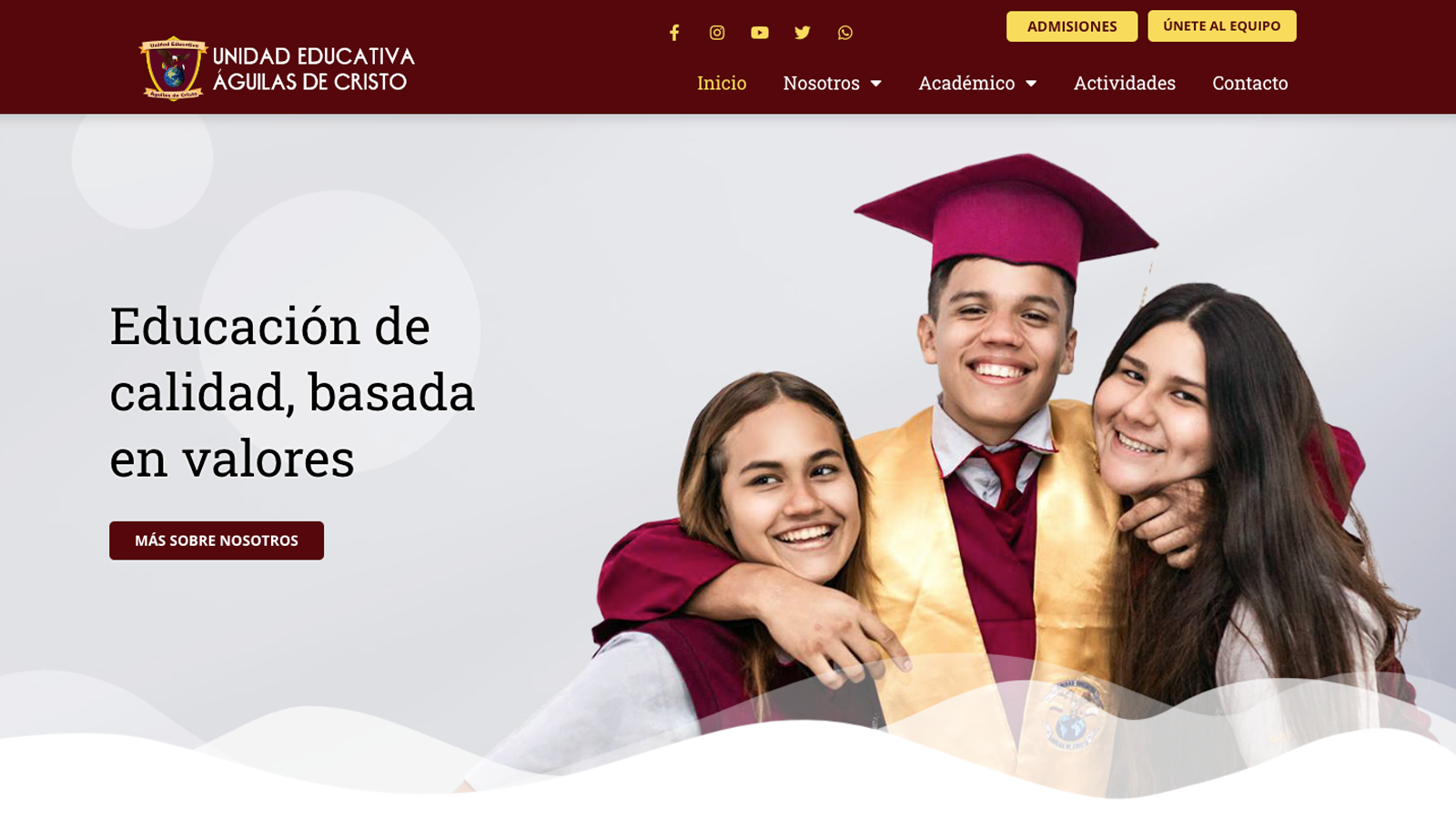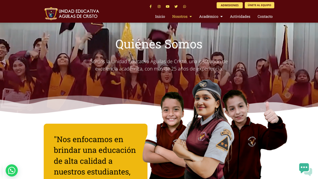 Rediseño del sitio web institucional de la Unidad Educativa Águilas de Cristo, de la ciudad de Guayaquil, Ecuador. Reorganización de los elementos en portada y secciones internas.